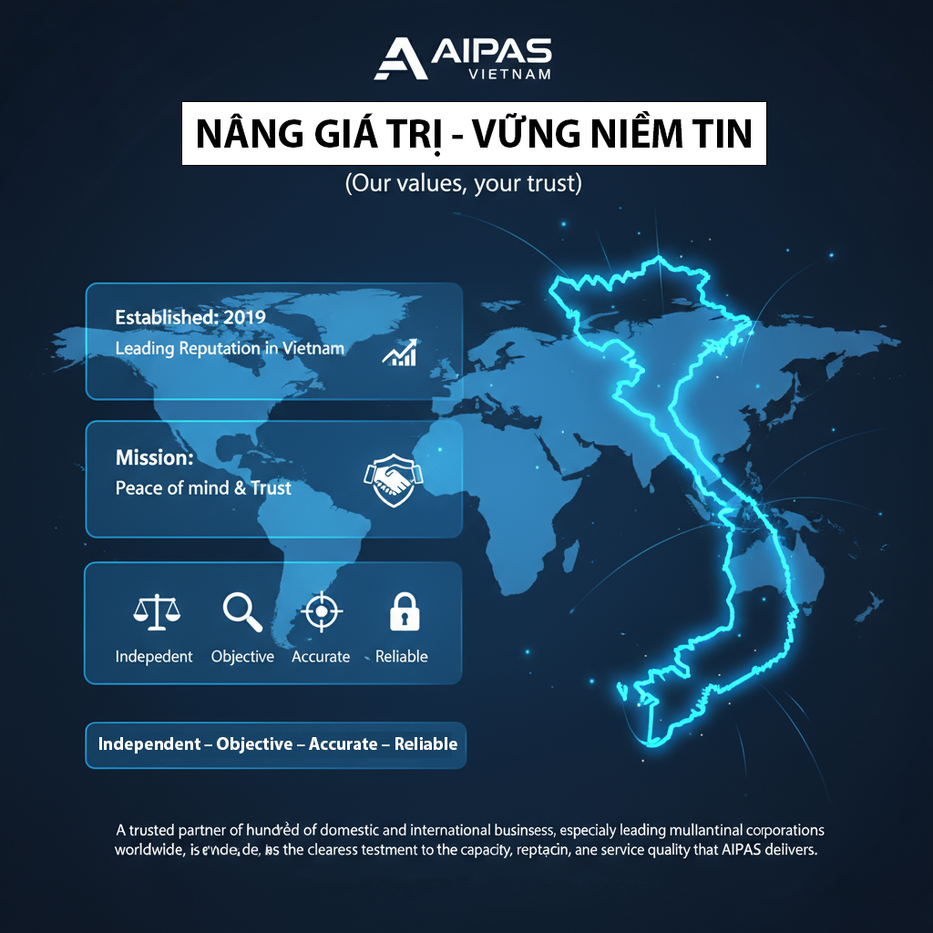 Với phương châm “Độc lập – Khách quan – Chính xác – Tin cậy” và slogan “Nâng giá trị, vững niềm tin” (Our values, your trust), AIPAS không chỉ là cầu nối tin cậy giữa doanh nghiệp và cơ quan quản lý, mà còn là đối tác đồng hành đáng tin cậy trên hành trình hội nhập quốc tế của các doanh nghiệp Việt Nam.