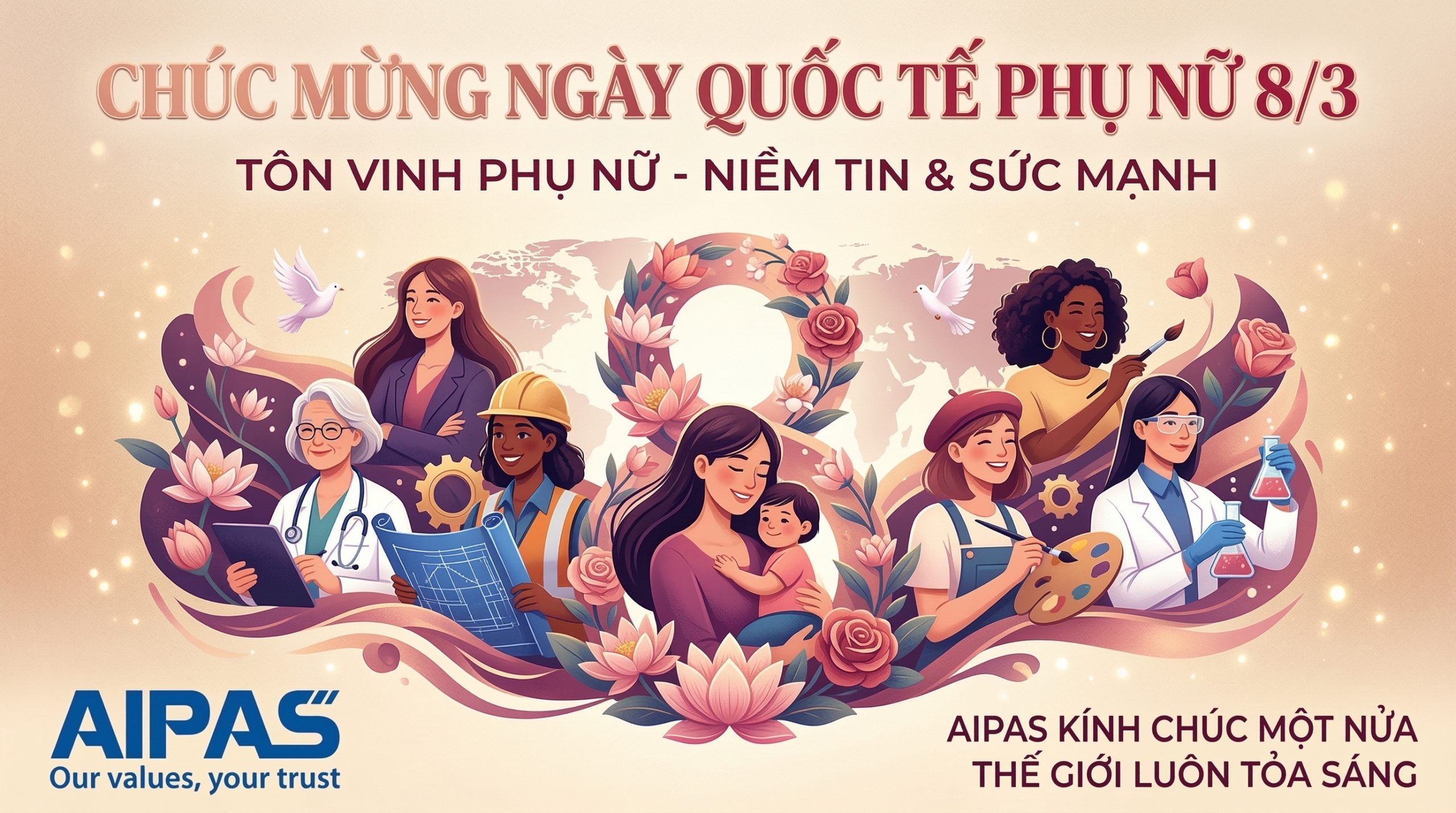 AIPAS trân trọng ghi nhận và tri ân sự đồng hành của Quý khách hàng, Quý đối tác cùng tập thể nữ cán bộ nhân viên. Chúc chị em có một ngày 8/3 thật ấm áp, ý nghĩa, ngập tràn niềm vui và yêu thương.